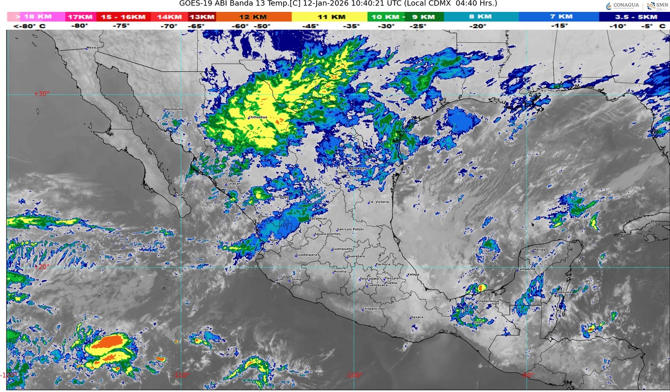 La masa de aire polar asociada al frente mantendrá el ambiente frío a muy frío durante la mañana y noche sobre el centro, oriente y sureste del país, así como evento de “Norte” fuerte a intenso en el litoral del golfo de México, istmo y golfo de Tehuantepec, condición que disminuirá durante la noche.